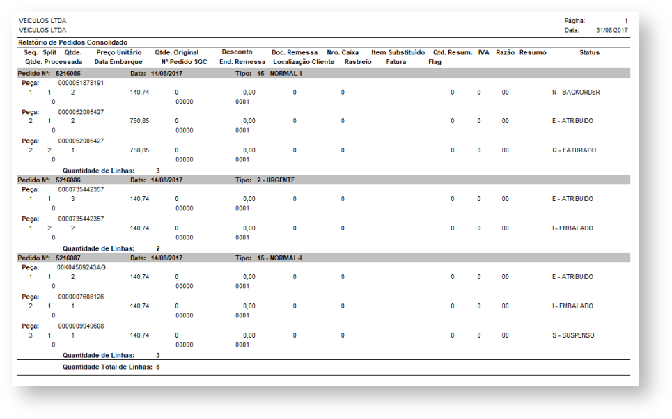 A seguir é apresentado o modelo de relatório de pedidos Confirmados ou Enviados: