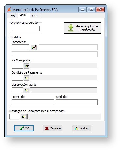 - Último PRIM2 Gerado: Número sequencial do último arquivo PRIM2 gerado. Esse campo é atualizado automaticamente.