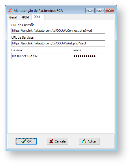 - URL de Conexão: Informe https://am.link.fiatauto.com/tsi/DDUWsConnect.php?wsdl