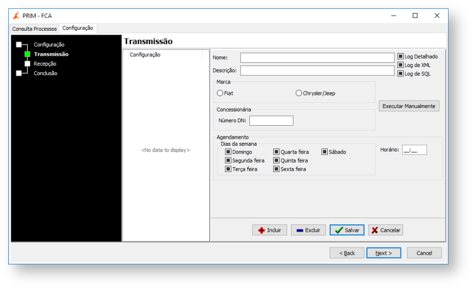 - Acesse o menu "Configuração > PRIM FCA";