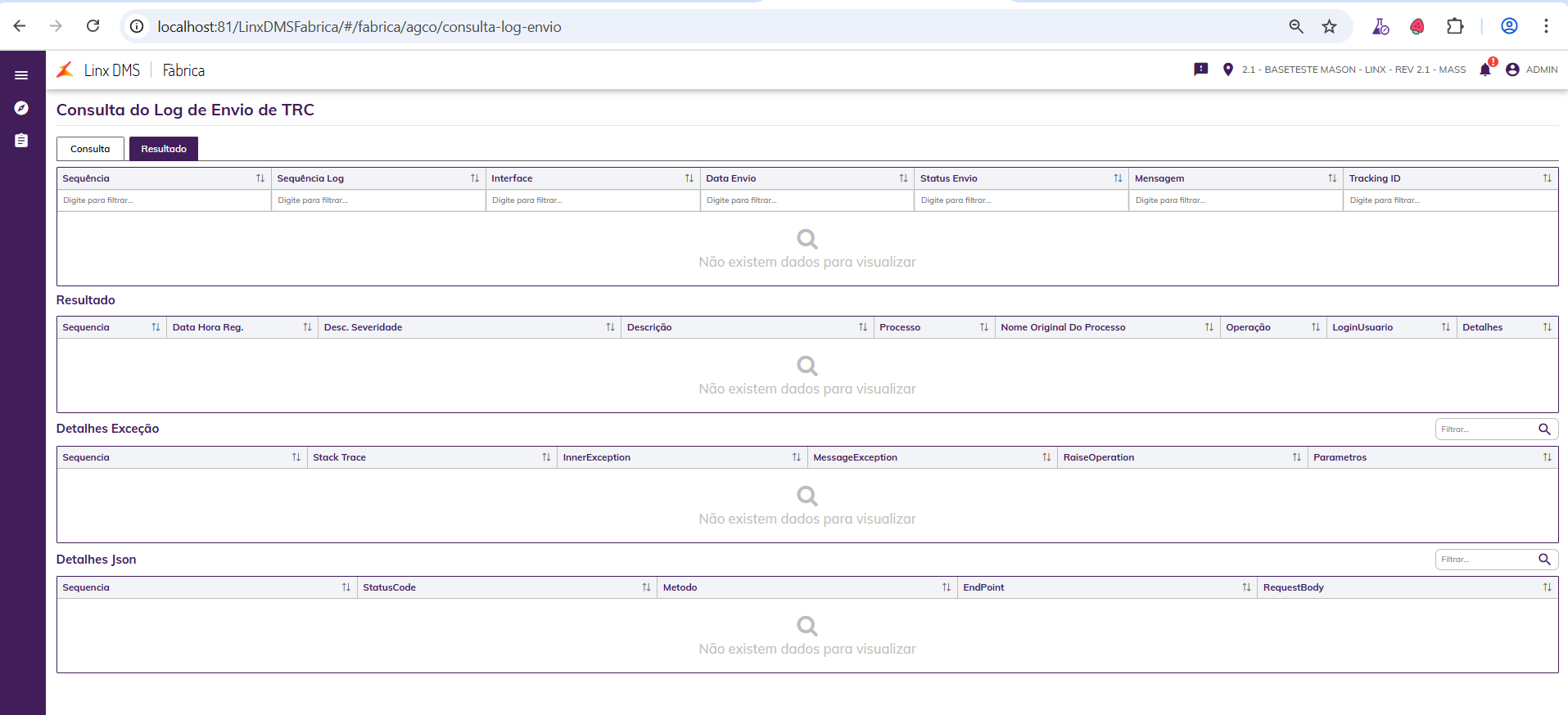 Figura 16: Consulta do Log de Envio de TRC - Resultado
