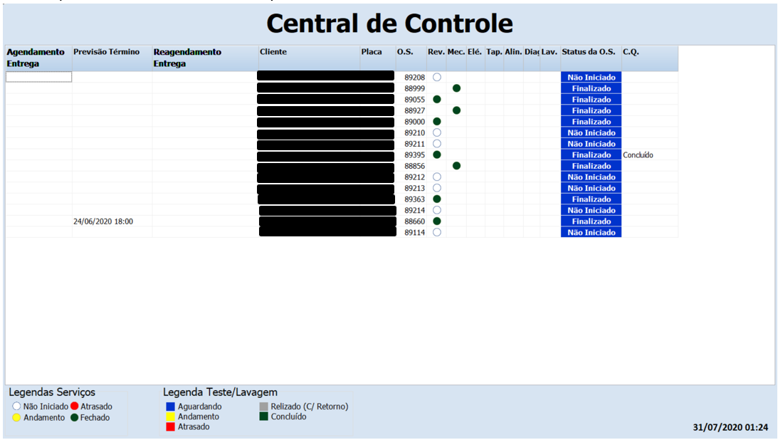 C.Q.: Coluna mostra o status do Checklist da O.S.