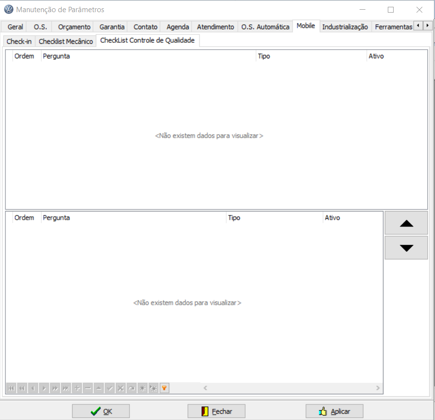 VW: Menu: Fluxo de Oficina > Controle de Qualidade (670) > Checklist de Qualidade.