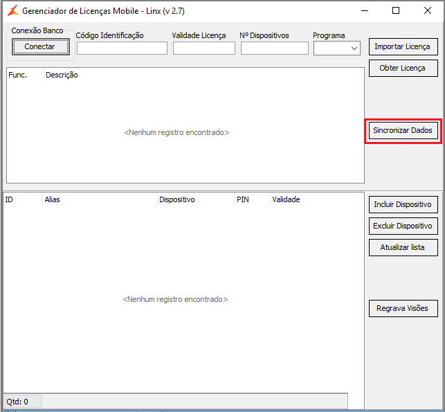 Para completar o CheckList VW com as informações que a montadora irá disponibilizar, deverá ser executado o processo de Sincronização dos dados através da opção "Gerenciador de Licenças Mobile" que fica localizado na pasta C:\Inetpub\Linx\Services