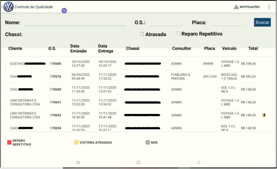 • Chassi: Campo para filtrar as O.S. com o chassi informado.