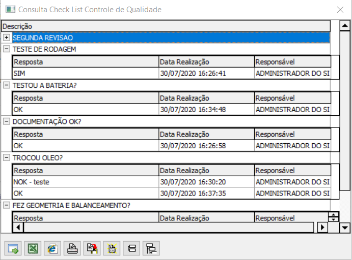 No resultado, irá trazer a listagem de itens e respostas do C.Q. da ordem de serviço que foi selecionada na busca.