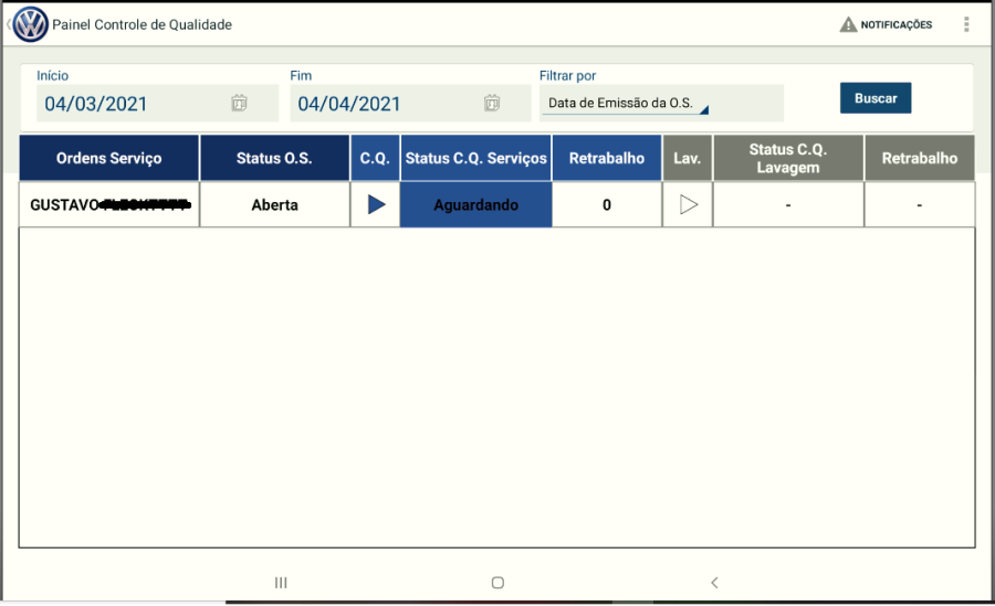 Observação: Ao acessar o card "Controle de Qualidade", o BRAVOS Mobile já trará uma lista de O.S.