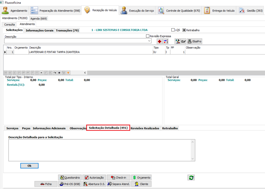 • Solicitação Detalhada (491): Opção para incluir uma descrição mais detalhada referente a solicitação.