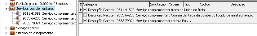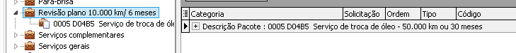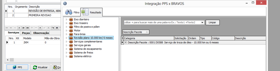 Revisão: Exibe todos os pacotes específicos da revisão lançada na solicitação da ordem de serviço/atendimento oficina.