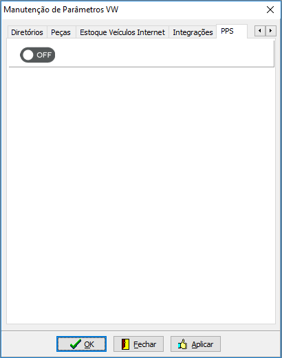 Ou acessar o menu "Fábrica VW> Parâmetros" e, na aba "PPS", clicar no botão OFF: