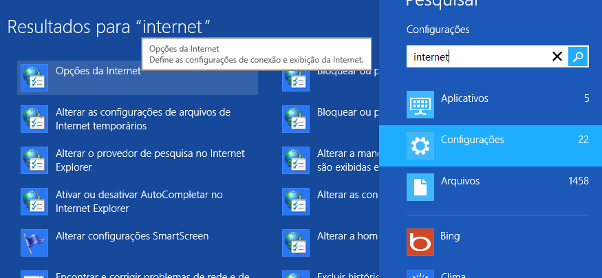 Figura 1: Pesquisar > Propriedades de Internet
