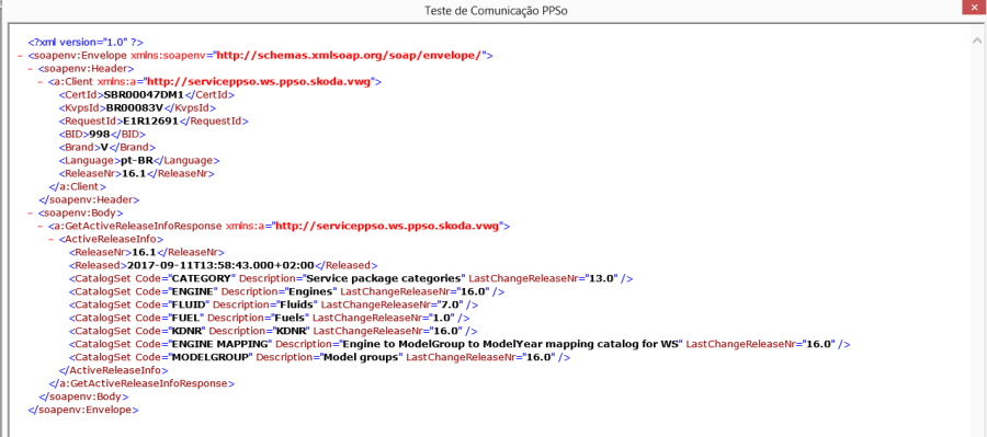 Abaixo segue a tela de retorno OK. Repare como vem um padrão xml definido e alinhado.