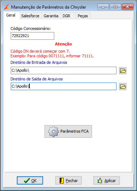Figura 1 : Manutenção de Parâmetros da Chrysler