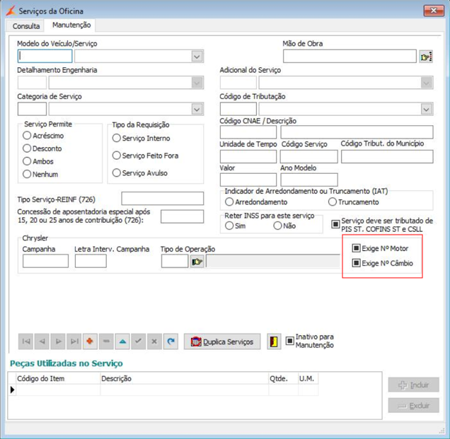 Menu Fábrica Chrysler > Oficina > Garantia > Manutenção