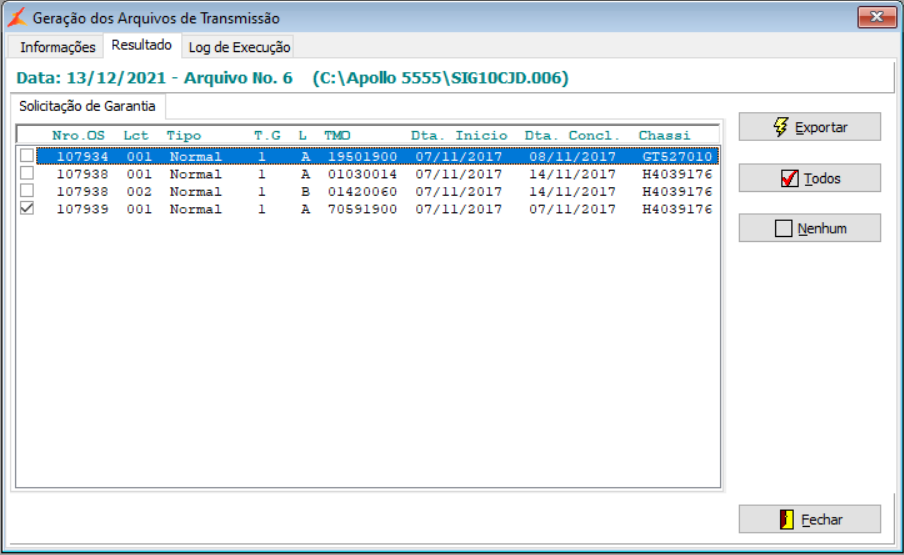 Figura 5 : Seleciona O.S. Garantia - Resultado