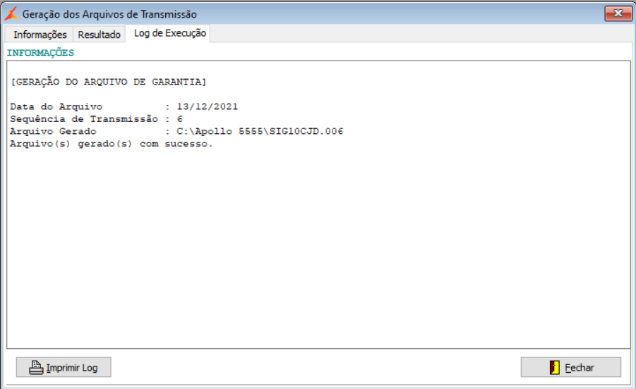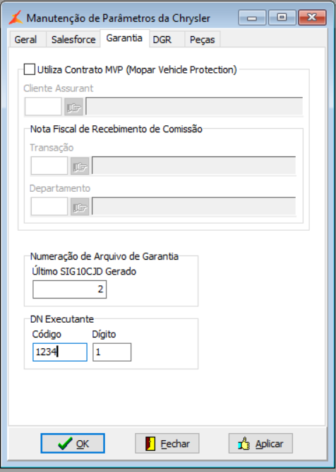 O campo "Último SIG10CJD Gerado" indica a numeração do último arquivo de garanta criado. No início da utilização do processo de garantia o campo pode ser mantido em branco pois o sistema grava automaticamente o número 1 na primeira geração.