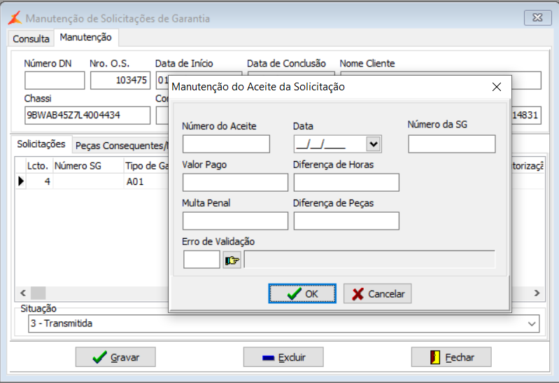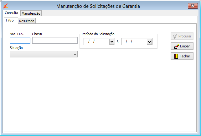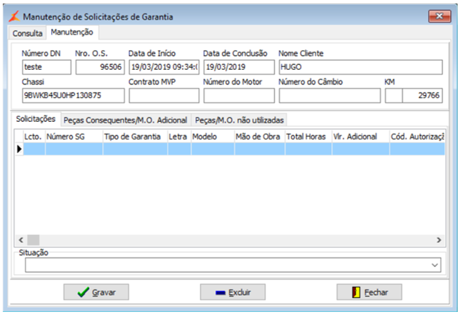 - Acessar a tela de Manutenção de Solicitações de Garantia