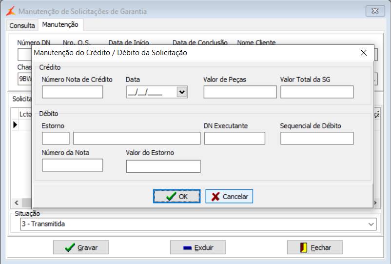 Todas as inserções/manutenções de "Crédito/Débito" são manuais no DMS.