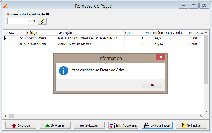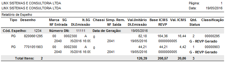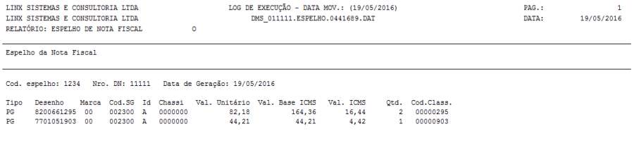 Após a liquidação das SG's (crédito) a montadora gera diariamente um arquivo de Espelho da Nota Fiscal para a concessionária. Este arquivo contém as peças que deverão ser enviadas para o departamento de garantia da Fábrica e seus respectivos valores.