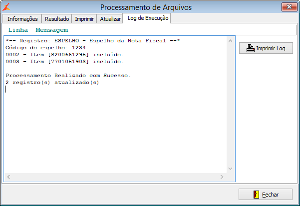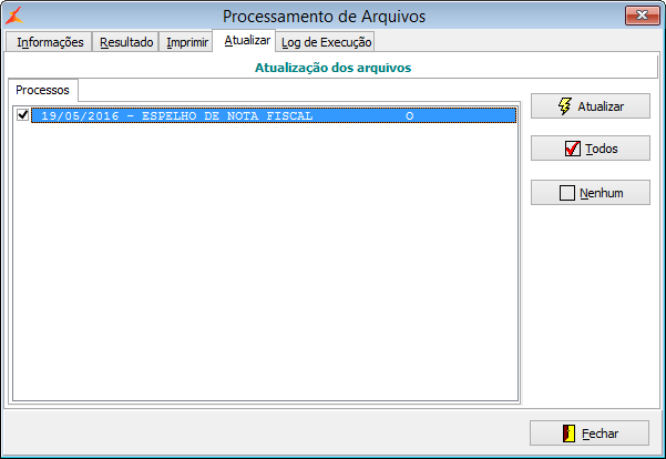 Após a verificação do arquivo, é possível imprimir e/ou atualizar as informações.