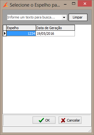 Se o número do espelho estiver em branco, será apresentada um com os espelhos disponíveis para emissão da NF.