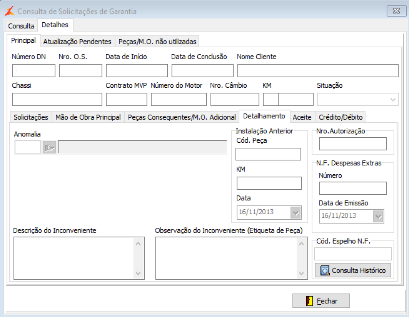 Campo obtido com a fábrica para determinados tipos de garantia. - N.F. Despesas Extras
