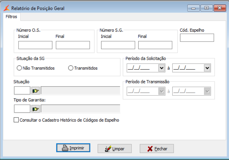 Menu Fábrica Chrysler > Oficina > Garantia > Relatório > Posição geral