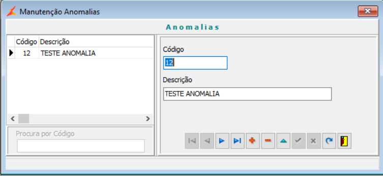 Menu Fábrica > Chrysler > Oficina > Garantia > Cadastros > Anomalias