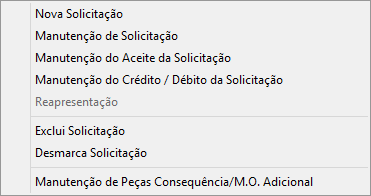 Ao clicar com o botão direito do mouse no grid de solicitações é apresentado o menu abaixo: