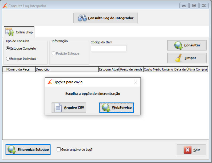 A sincronização do Estoque pode ser gerada por arquivo .CSV ou envida diretamente ao Web Service da Montadora. O arquivo .CSV sempre será gerado e salvo no diretório de saída configurado em