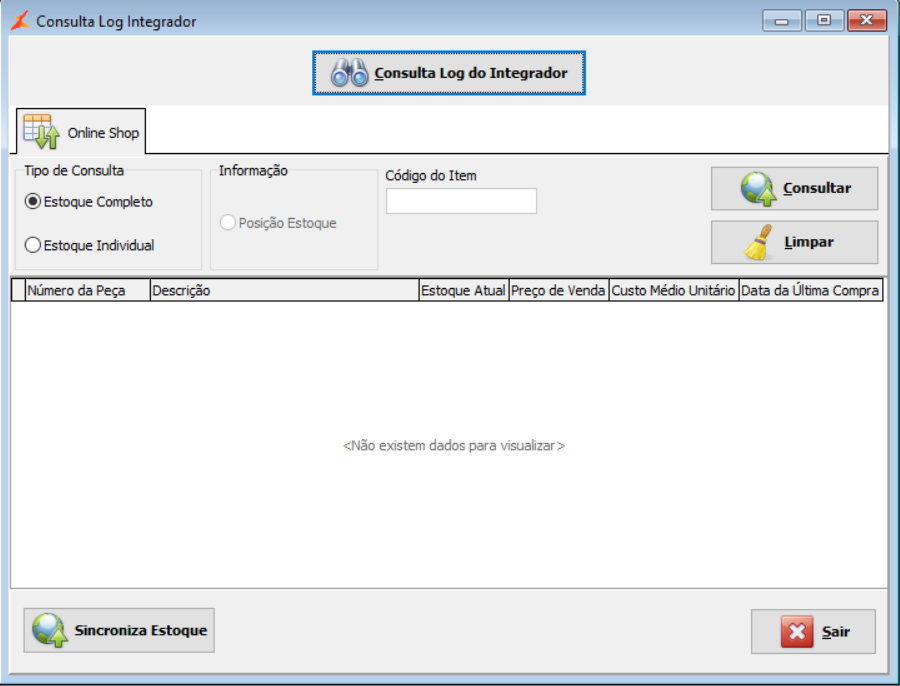 - Sincroniza Estoque : Estado atual do estoque para peças que já tiveram ou não alguma movimentação.