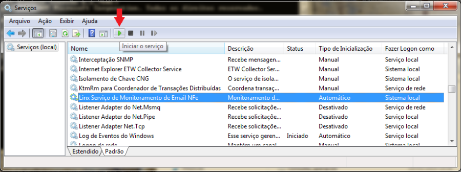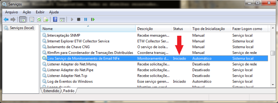 Após estes procedimentos, a seguinte tela deverá ser observada no monitor de serviços do Windows, indicando que o serviço instalado e em execução: