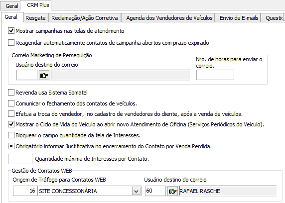 Esta opção pode ser utilizada, por exemplo, para os contatos gerados a partir do site da concessionária.