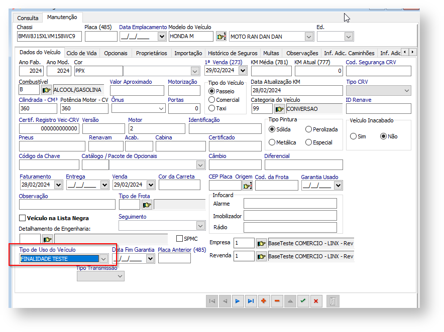 Ainda que o cliente possua vários Dealers (Exemplo Empresa/Revenda 1.1, 1.2, 1.3), é necessário apenas uma sessão do MyHonda em execução com Monitoramento Ativo - Finalidade de uso com valor fora do domínio. (Campos COD_USO_FINALIDADE)