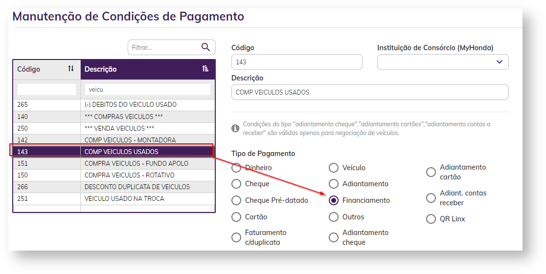 Observação: Verifique com a Montadora quais os tipo de finalidade esperado - Data de Financiamento é menor que a data do Pedido. (Campo DAT_FINANCIAMENTO)