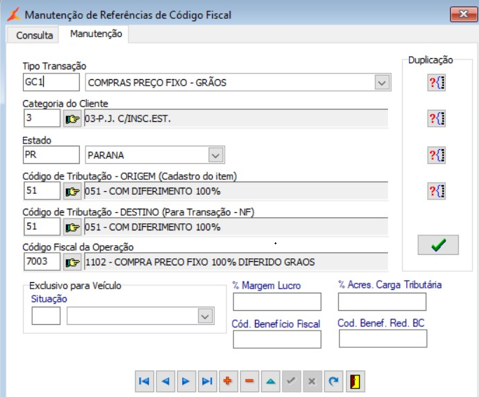 O sistema verifica a Referência do Código Fiscal de Operação. Esta deve ser cadastrada pelo Menu: Faturamento > Cadastro > Referência Código Fiscal Operação.