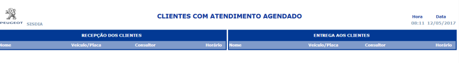 O quadro sempre corresponderá ao dia atual, e a concessionária poderá configurar o tempo de atualização automática do quadro.
