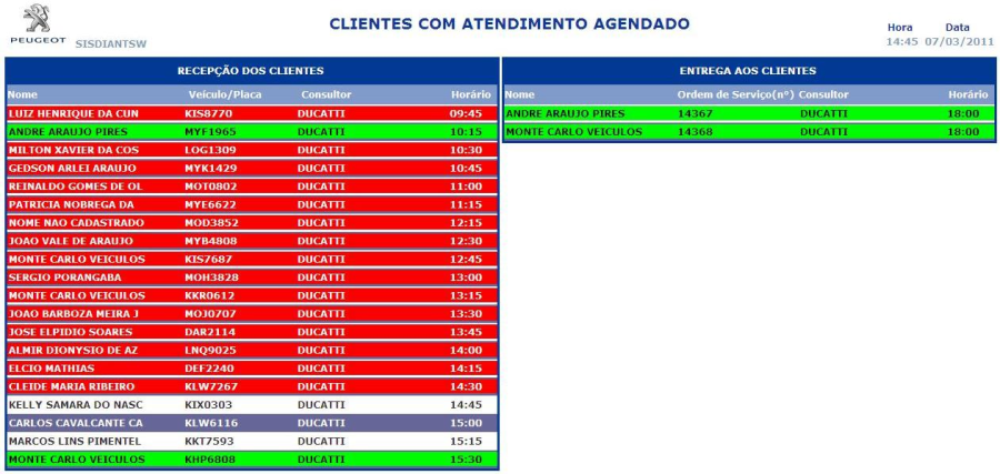 Agendamentos com Horário inferior a hora atual, atrasados, ficam na cor (Vermelha).