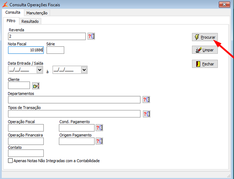 - Passo 1 - Acesse a tela de Consulta Operações Fiscais e pesquise pela nota fiscal desejada para o cancelamento.