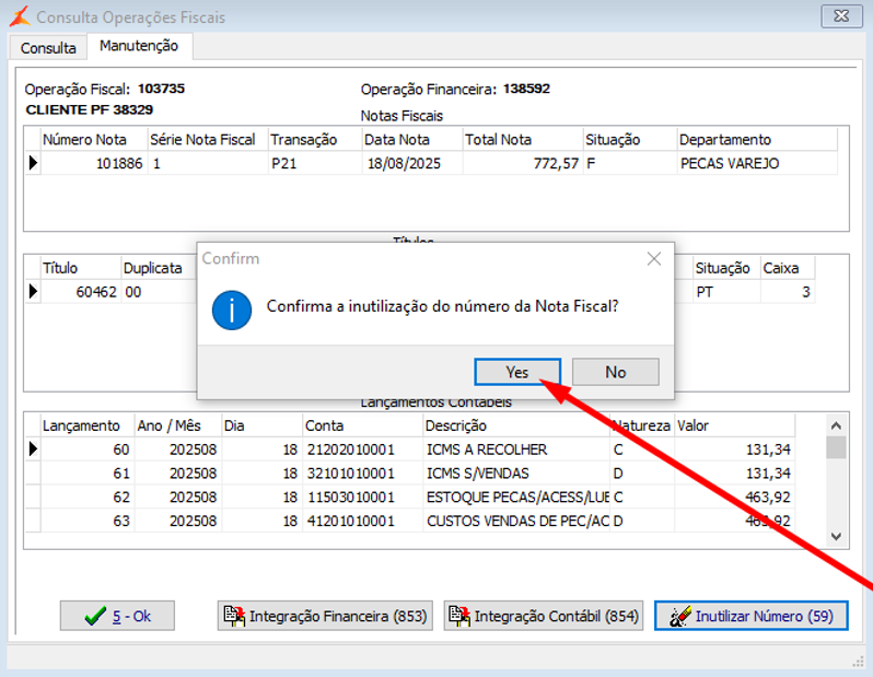 - Passo 3 - Clique em Sim(Yes) para confirmar a inutilização.