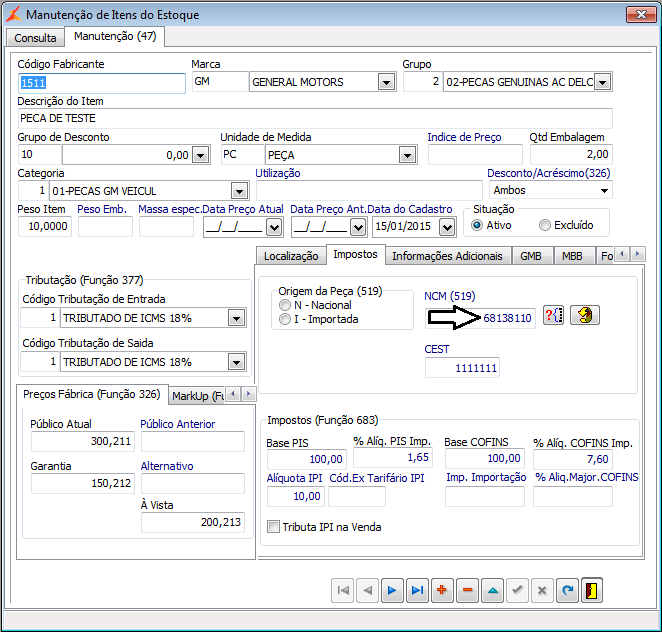 Figura 1: Tela de Manutenção de NCM