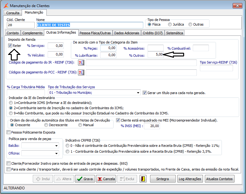 Implementada a possibilidade de definir o tipo de categoria do item, no cadastro do seu NCM, e usar este tipo de categoria para encontrar o % do Imposto de Renda que está definido no cadastro do cliente da nota, e usá-lo para calcular o IR nos atendimentos de oficina e de balcão.