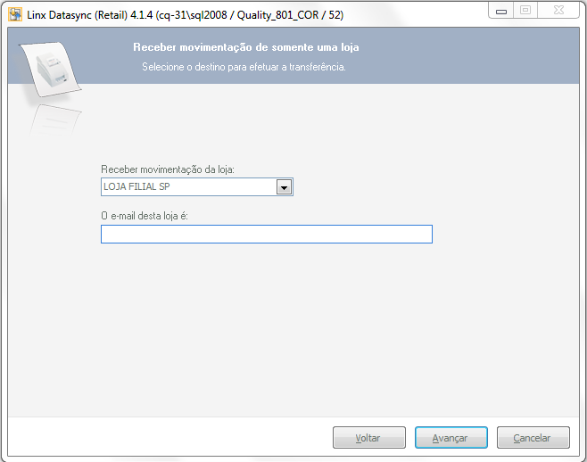 12. Selecione a filial da loja que enviou o movimento e digite o e-mail da loja caso a opção de transferência utilize o recurso.