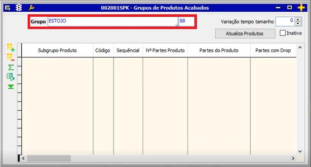 | Grupo | O nome do grupo de produtos (campo obrigatório). |