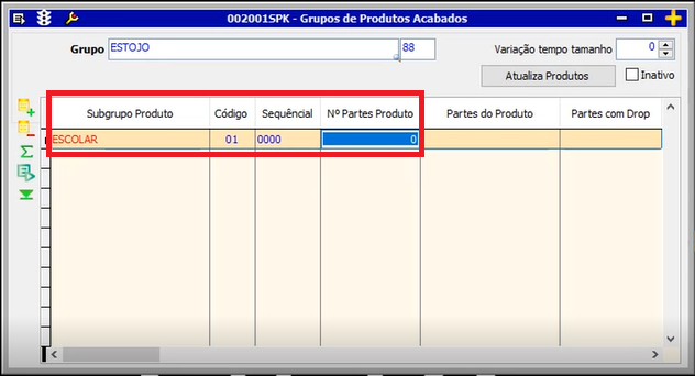 | Inativo | Caso o checkbox seja preenchido, o subgrupo correspondente se torna inativo. |