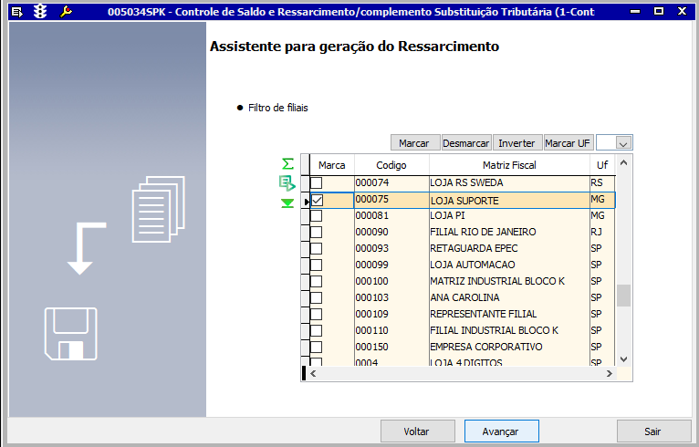 Filtro de Filiais:
