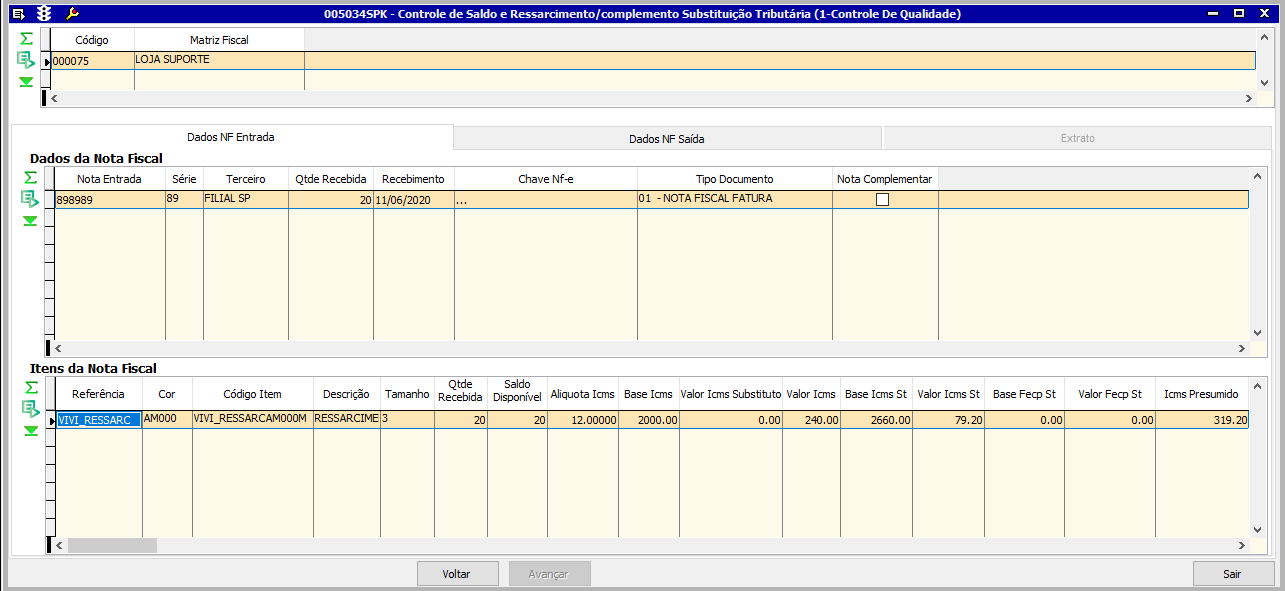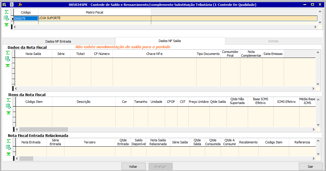 Nota Fiscal Entrada Relacionada: Será apresentada a nota fiscal de entrada relacionada à saída selecionada.