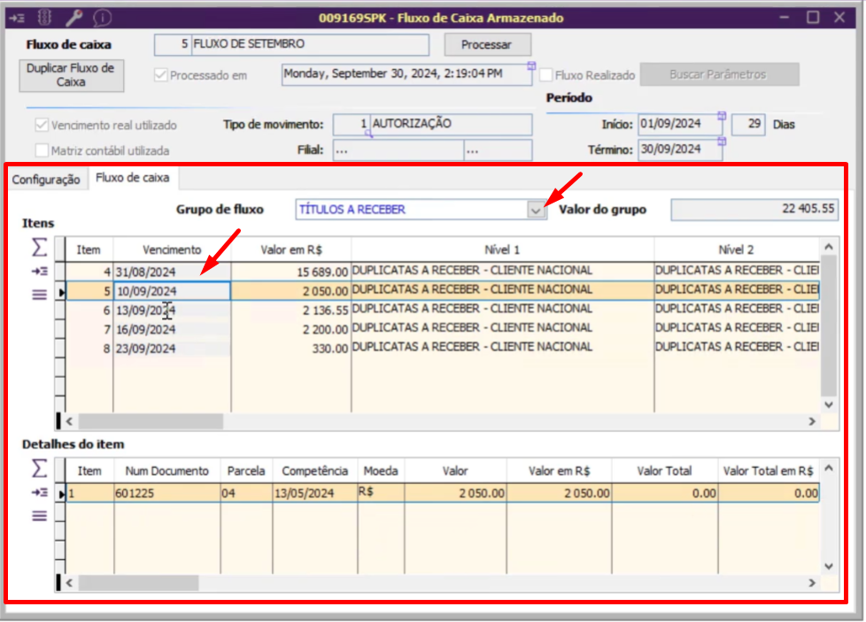 - Vencimento Real Utilizado: Define que todas as informações do fluxo serão baseadas no vencimento real.