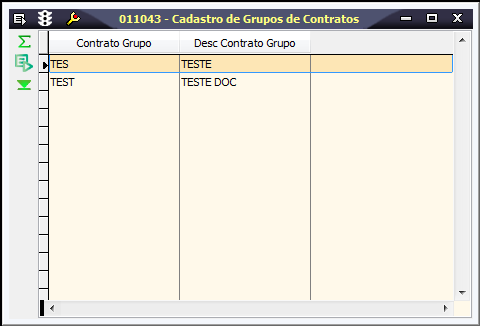 1. Acesse a tela 011043 - Cadastro de Grupo de Contratos.