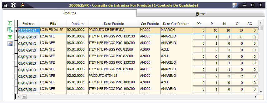 1. Acesse a tela 300062 - Consulta de Entradas por Produtos.